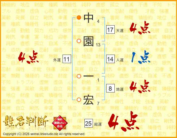 中園一宏さんの天運は17画の4点!