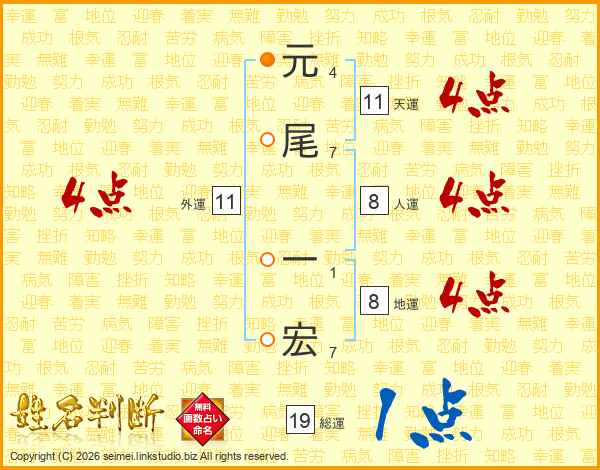 元尾一宏さんの天運は11画の4点!