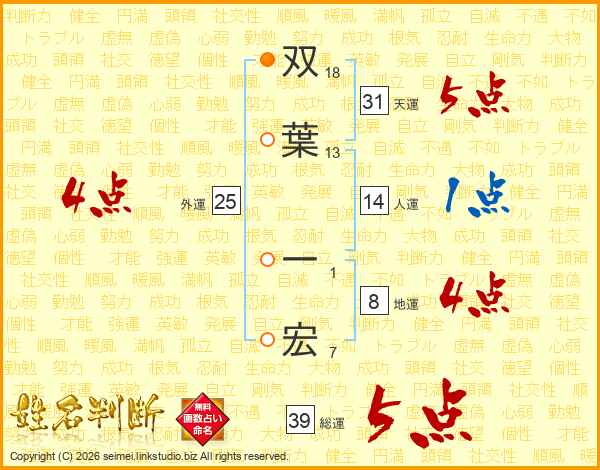 双葉一宏さんの総運は39画の5点!