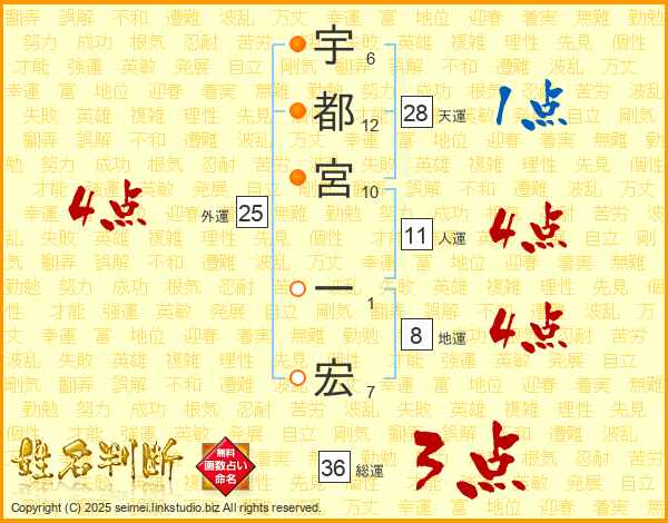 宇都宮一宏さんの人運は11画の4点!