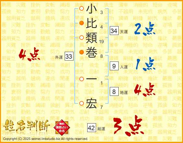 小比類巻一宏さんの総運は42画の3点!