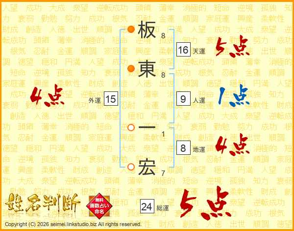 板東一宏さんの総運は24画の5点!