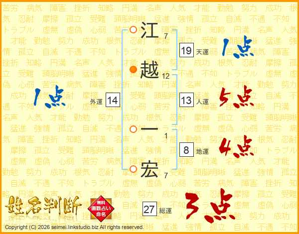 江越一宏さんの人運は13画の5点!