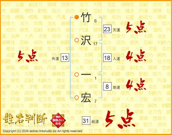 竹沢一宏さんの総運は31画の5点!