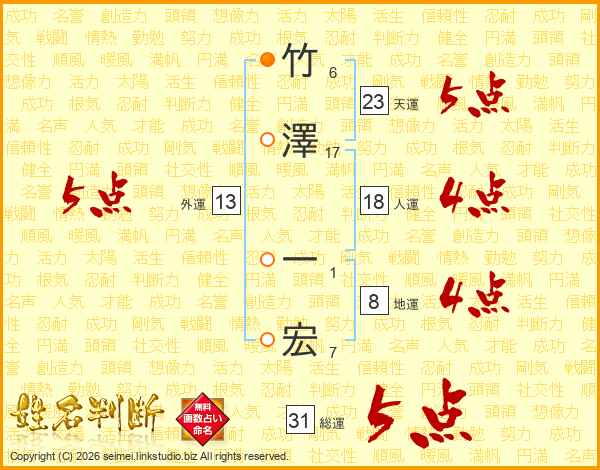 竹澤一宏さんの総運は31画の5点!