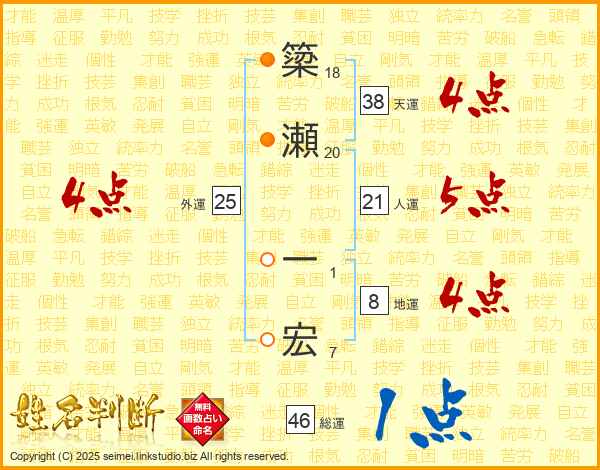 簗(18画)瀬(20画) 一(1画)宏(7画)