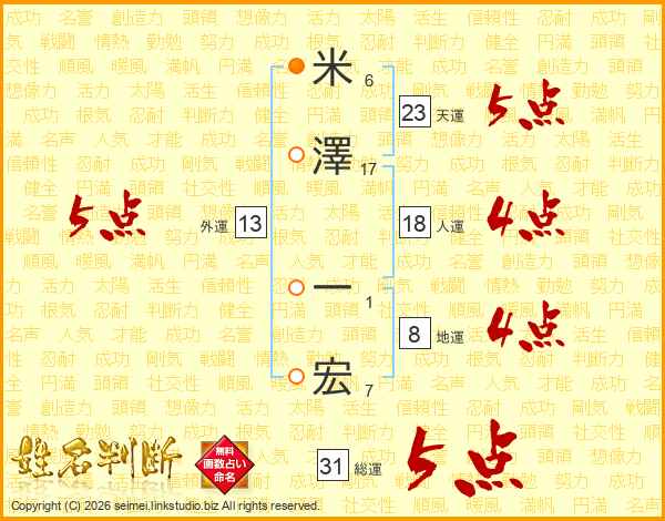 米澤一宏さんの総運は31画の5点!