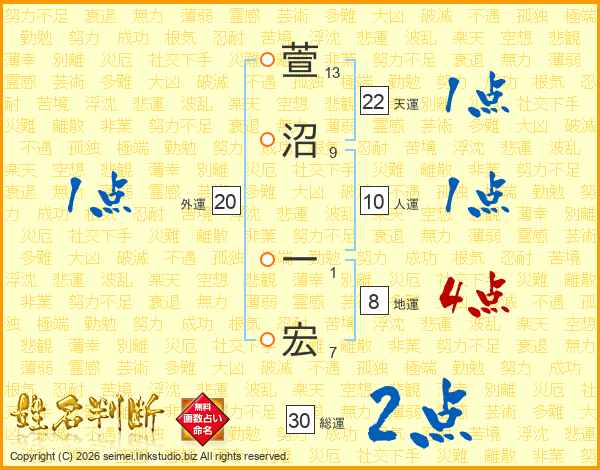 萱沼一宏さんの天運は22画の1点!
