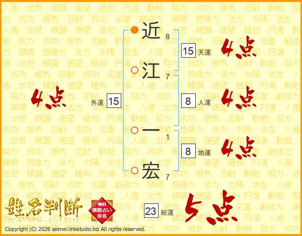近江一宏さんの天運は15画の4点!