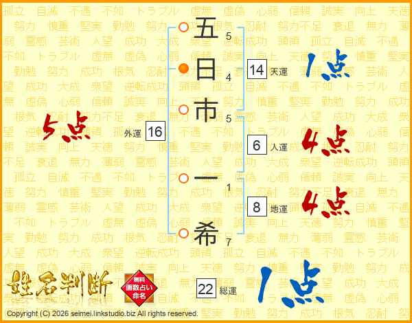 五日市一希さんの総運は22画の1点!