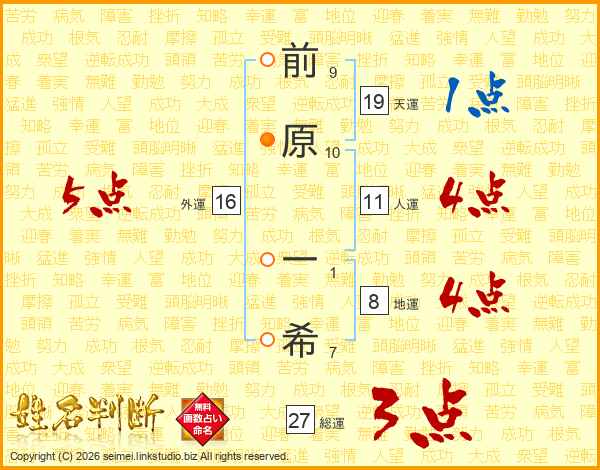 前原一希さんの総運は27画の3点!