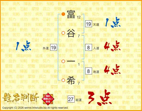 富(12画)谷(7画) 一(1画)希(7画)
