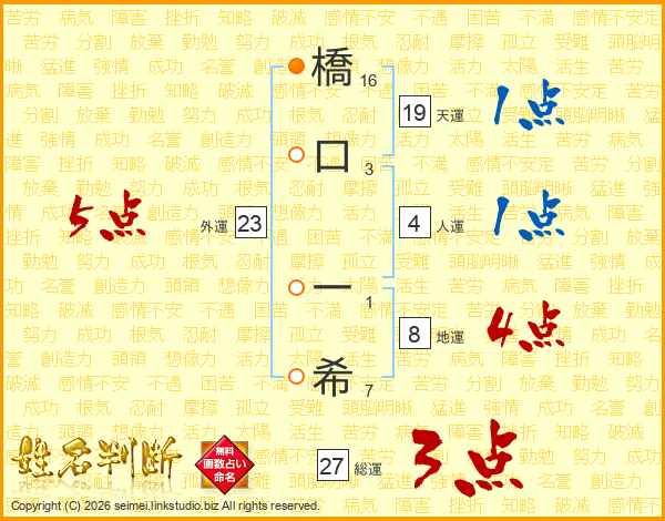 橋口一希さんの総運は27画の3点!