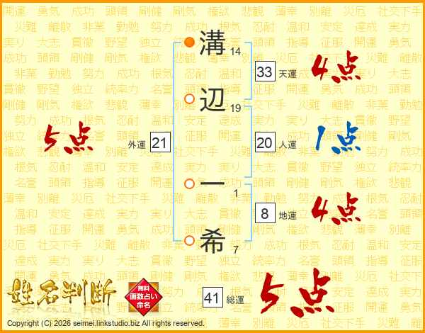 溝辺一希さんの天運は33画の4点!