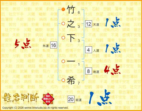 竹之下一希さんの総運は20画の1点!
