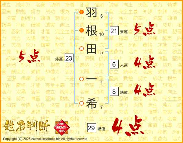 羽根田一希さんの総運は29画の4点!