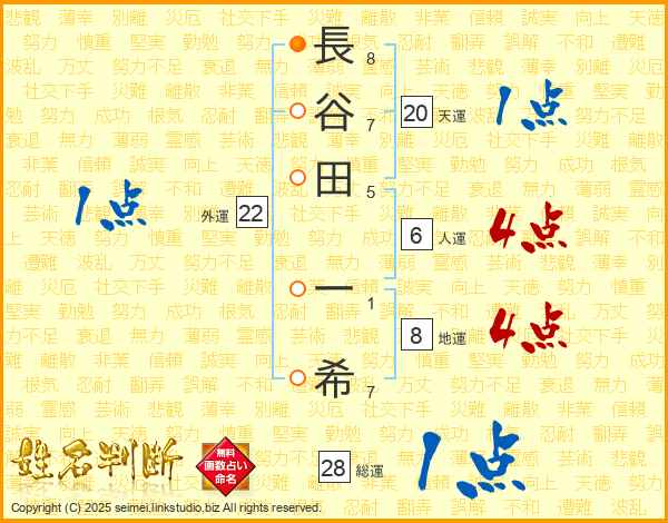長谷田一希さんの総運は28画の1点!