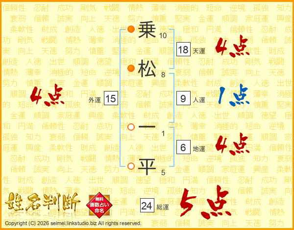 乗松一平さんの天運は18画の4点!