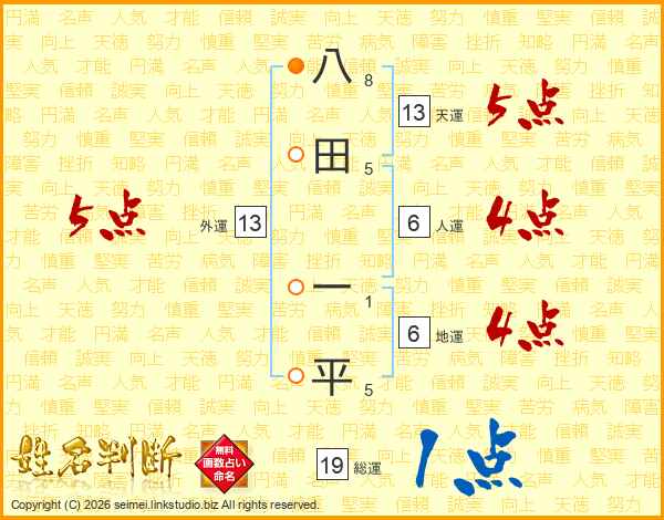 八田一平さんの総運は19画の1点!