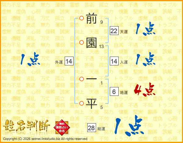 前園一平さんの人運は14画の1点!