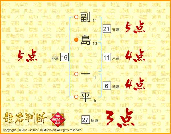 副島一平さんの総運は27画の3点!