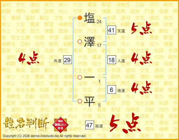 塩澤一平さんの総運は47画の5点!