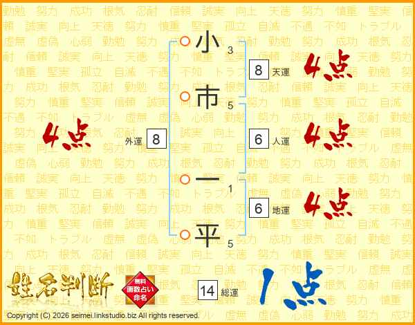 小市一平さんの総運は14画の1点!