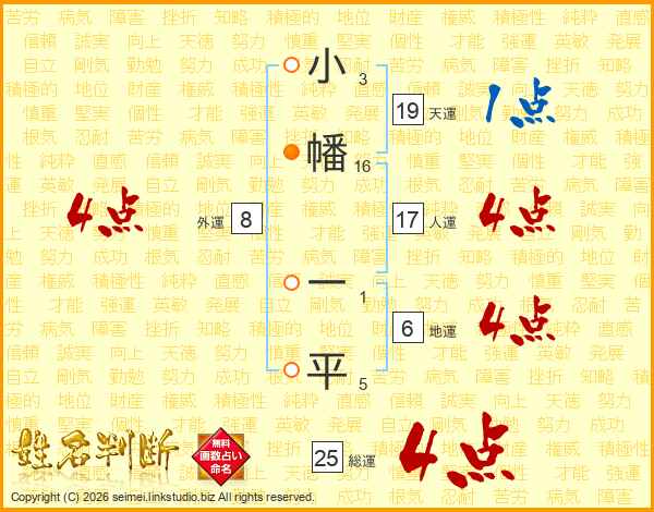 小幡一平さんの総運は25画の4点!