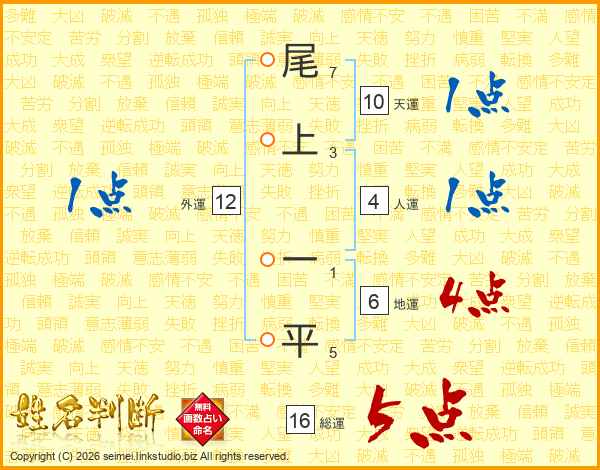 尾上一平さんの総運は16画の5点!