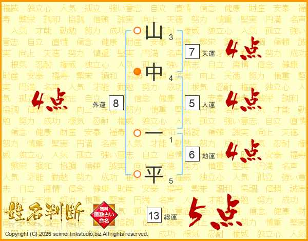 山中一平さんの総運は13画の5点!