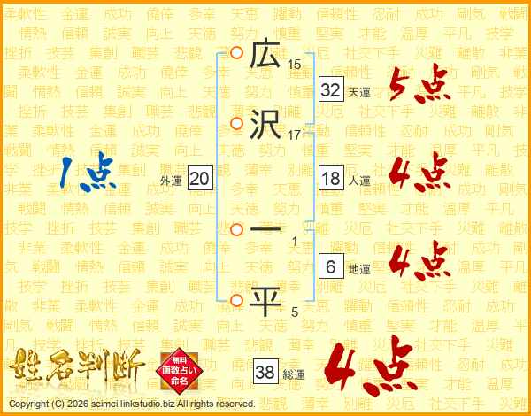 広沢一平さんの総運は38画の4点!