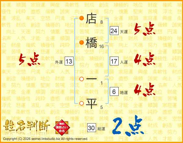 店橋一平さんの総運は30画の2点!
