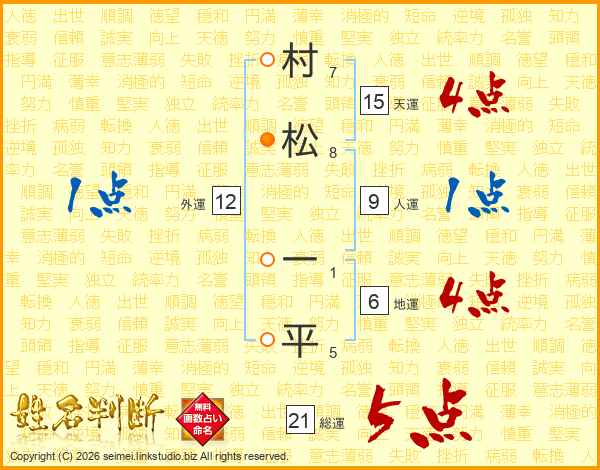 村松一平さんの総運は21画の5点!