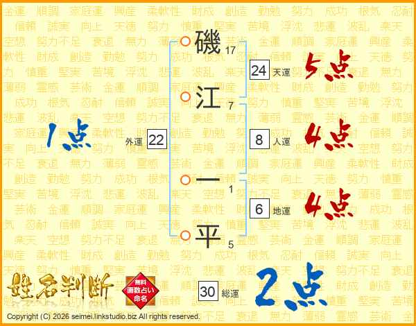 磯江一平さんの総運は30画の2点!