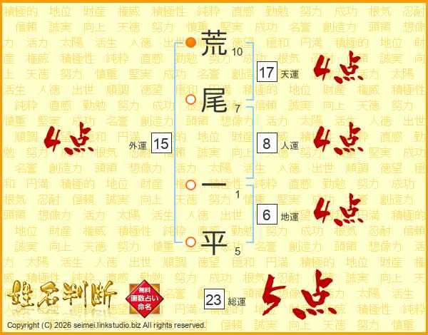 荒尾一平さんの総運は23画の5点!