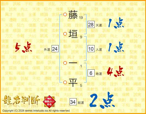 藤垣一平さんの総運は34画の2点!