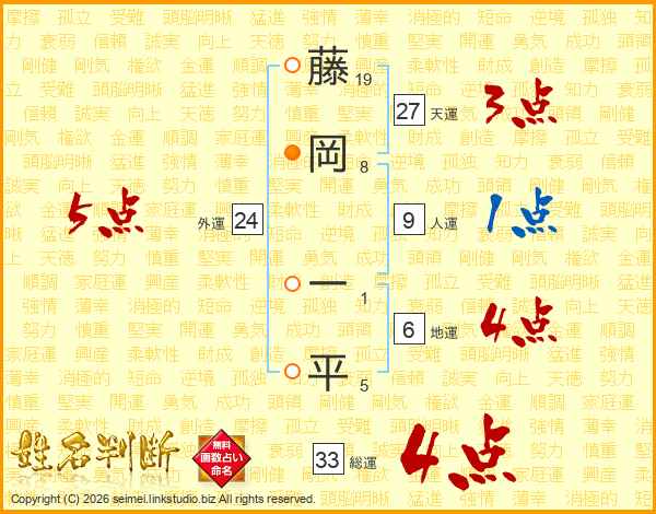 藤岡一平さんの総運は33画の4点!