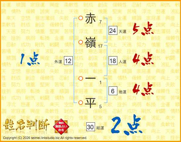 赤嶺一平さんの総運は30画の2点!