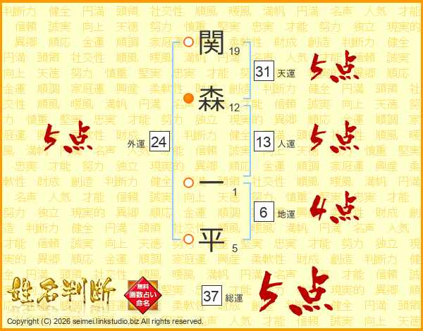 関森一平さんの総運は37画の5点!