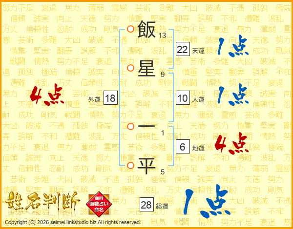 飯星一平さんの外運は18画の4点!