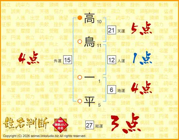 高鳥一平さんの総運は27画の3点!