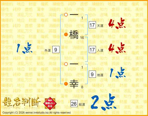 一橋一幸さんの人運は17画の4点!