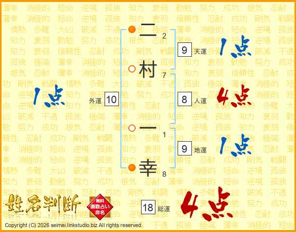 二村一幸さんの総運は18画の4点!