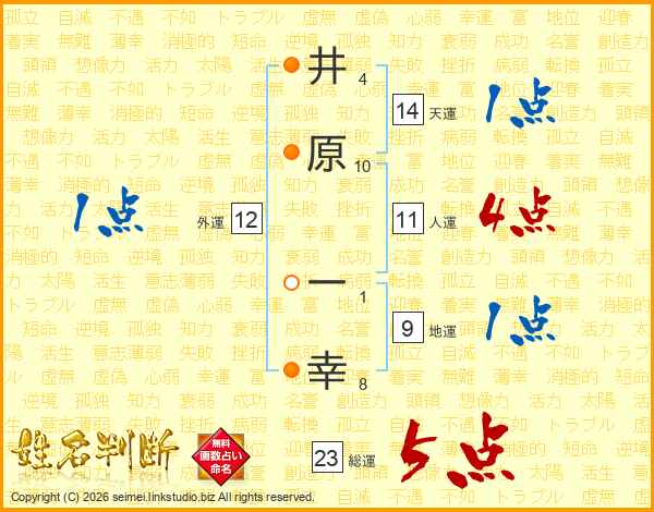 井原一幸さんの総運は23画の5点!