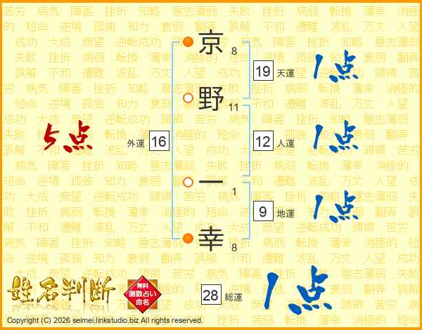 京野一幸さんの天運は19画の1点!