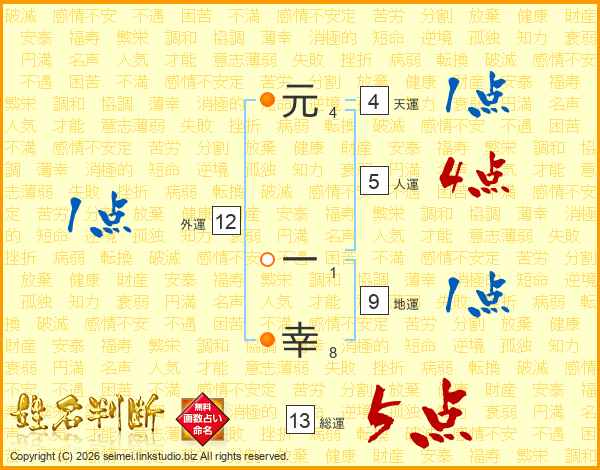 元一幸さんの総運は13画の5点!