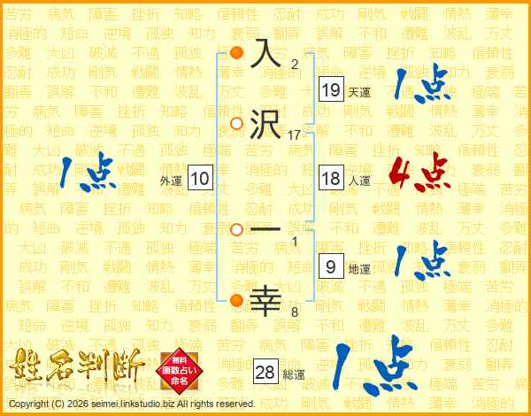 入沢一幸さんの総運は28画の1点!