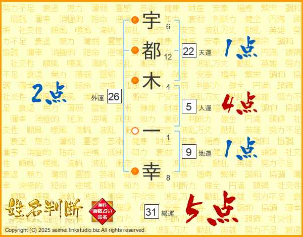 宇都木一幸さんの総運は31画の5点!