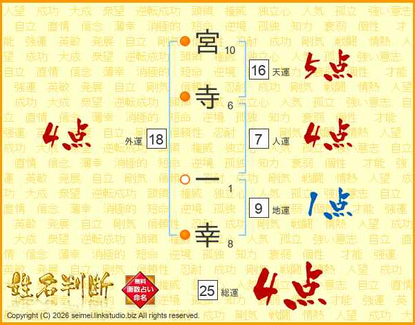 宮寺一幸さんの総運は25画の4点!