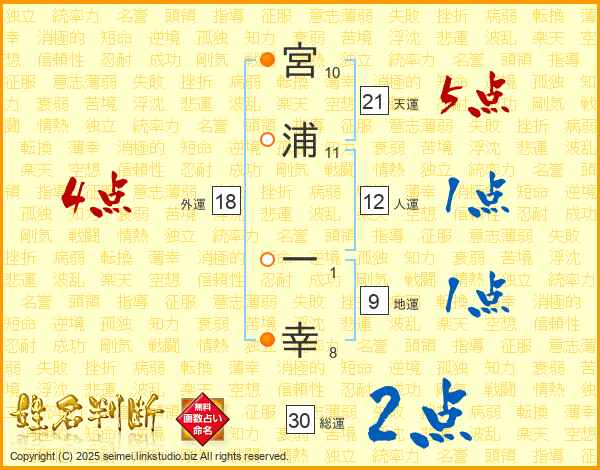 宮浦一幸さんの天運は21画の5点!